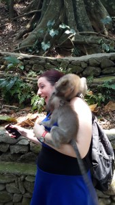 The first thing we did was go to Monkey Forest. The forest delivers what it promises. There were monkeys everywhere! They are used to being fed by humans, so they will jump on you and take food from you (or your water bottle, or earrings, or Disney pins, or anything else they can grab) with no fear. The monkeys are free range and could leave the walled area if they wanted to, but they generally don’t because of the food. The forest isn’t very big, though, so it is a cheap, fun way to spend half a day.