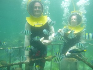 The next day we went for some water fun! Bali is an island, so it is famous for its beaches and water sports. We did this really cool thing called a sea walk where you walk along the bottom of the ocean and wear a big dive helmet. It is great for people who wear glasses and can’t wear regular goggles or have problems using snorkels. We also did some snorkeling and a glass bottom boat ride, but those kind of sucked in comparison after the sea walk. If I ever go back, I really want to try some proper scuba diving.
